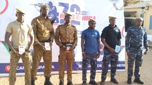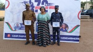 Vingt gendarmes ont été distingués pour leur engagement exemplaire. Quatre commandants d’escadron ont reçu des attestations de reconnaissance pour leur leadership opérationnel : les Capitaines Marcel Bako, Blaise Kougri Ague, Ange Zougmoré ainsi que le Lieutenant Modeste Bamogo.