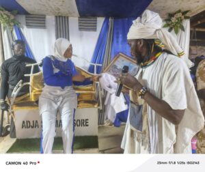 Au cours de cette cérémonie empreinte de spiritualité et de ferveur, l’artiste a procédé à la remise officielle d’une attestation de reconnaissance à la guérisseuse de Bazoulé, saluant ainsi son engagement au service des populations et sa contribution à la préservation des savoirs traditionnels.