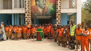 Accompagnés par la guide du mémorial, Talato, les élèves ont parcouru plusieurs espaces emblématiques du site. Depuis les fresques murales retraçant les grandes étapes de la Révolution jusqu’au bureau reconstitué du Capitaine Thomas Sankara, en passant par les expositions consacrées à ses douze compagnons tombés à ses côtés, les enfants ont découvert une page essentielle de l’histoire nationale.